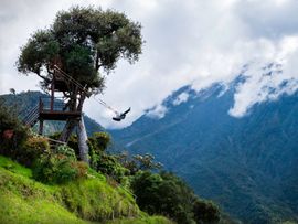 バニョス日帰り観光ツアー 「悪魔の大釜」パイロン・デル・ディアブロの滝+世界の果てのブランコなど<混載/英語ガイド/キト発>