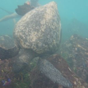 giant tortoise with long neck on desert area and the other is marine turtle who swim with you. It is said that Dr.Darwin found out his theory of evolution from these.