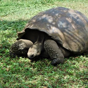 giant tortoise with long neck on desert area and the other is marine turtle who swim with you. It is said that Dr.Darwin found out his theory of evolution from these.
