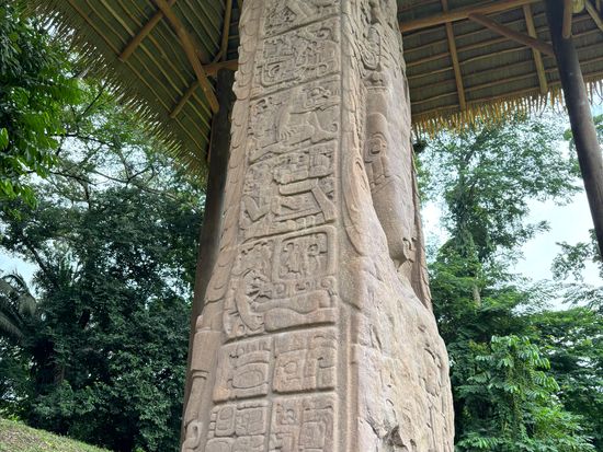 キリグア遺跡は世界遺産ですが、ティカル遺跡に比べるとあまり有名ではない印象で、保存状態の良い石碑が見れるくらいの気持ちで行きましたが、保存状態の良さもさることながら、周辺の自然、ガイドさんの気持ちのこもった説明とがあいまって、これらが造られた頃に思いを馳せながらマヤの時間を感じられることができ、期待以上の旅でした。前日にティカル遺跡に訪問していましたが、それと比べても遜色ない経験というか、同じマヤ遺跡ですが、当たり前ですが全く別物です。