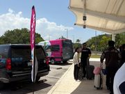 空港の到着出口にいろんな会社のスタッフさんが出待ちされていましたが、Mrsシャツがわかりやすかったです。名前の確認をしたら、その日は51番のバス乗り場まで歩いて行きましたが、すぐに旗がありわかりました。 その日はヒルトンまで送っていただきましたが、待ち時間も3分位ですぐに乗せていただけました。チップを2ドル払っておりました。