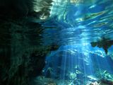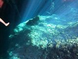 朝5:10集合と早い時間ですが、誰もいないグランセノーテに一番乗りで入れます!でしたが、ウエットスーツ、ライフジャケット、ゴーグル、シュノーケル、GoProをお借りしていざ泉の中へ。水は冷たいですがウエットスーツがあるのですぐ慣れます。水の透明度が半端なくあんなに綺麗な水中の世界は初めて見ました!光のカーテンも神秘的。GoProで綺麗に撮れました。