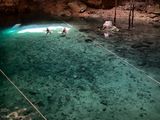 この度、初めてのカンクンで、この15時間弾丸ツアーに参加しました。朝早い出発でしたが、グランセノーテは一番乗り。誰もいないグランセノーテは、水も超綺麗で、水中の光の線がとても神秘的でした。