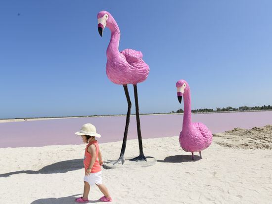色鮮やかなピンク色の別世界が目の前に広がるピンクレイク