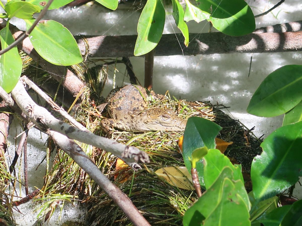 ・フラミンゴをみて泥パックをするボート移動で、沢山の野鳥や、ワニも間近で見られた。