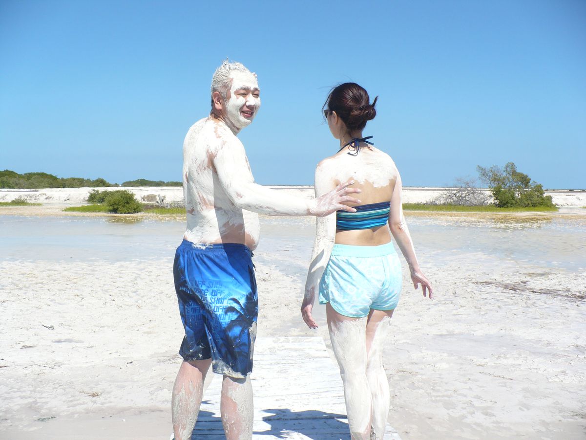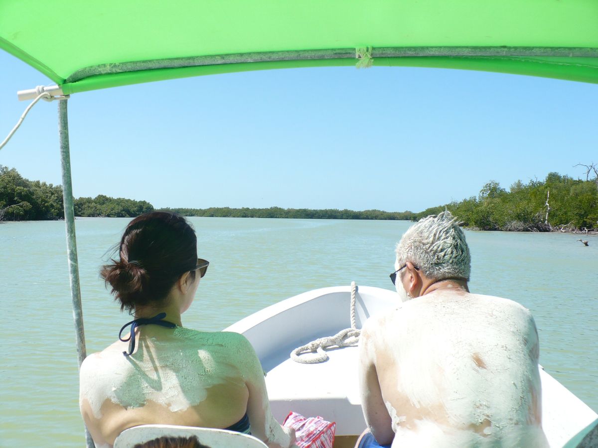 船長さんが泥をくれて身体にぬりぬり。そのままラグーンを船で移動してお昼ご飯の近くの港に行きシャワーで泥を落としました。その後お昼ごはんを食べ、バスでカンクンへ。ちょっと遠い道のりですがいく価値は充分にありました★