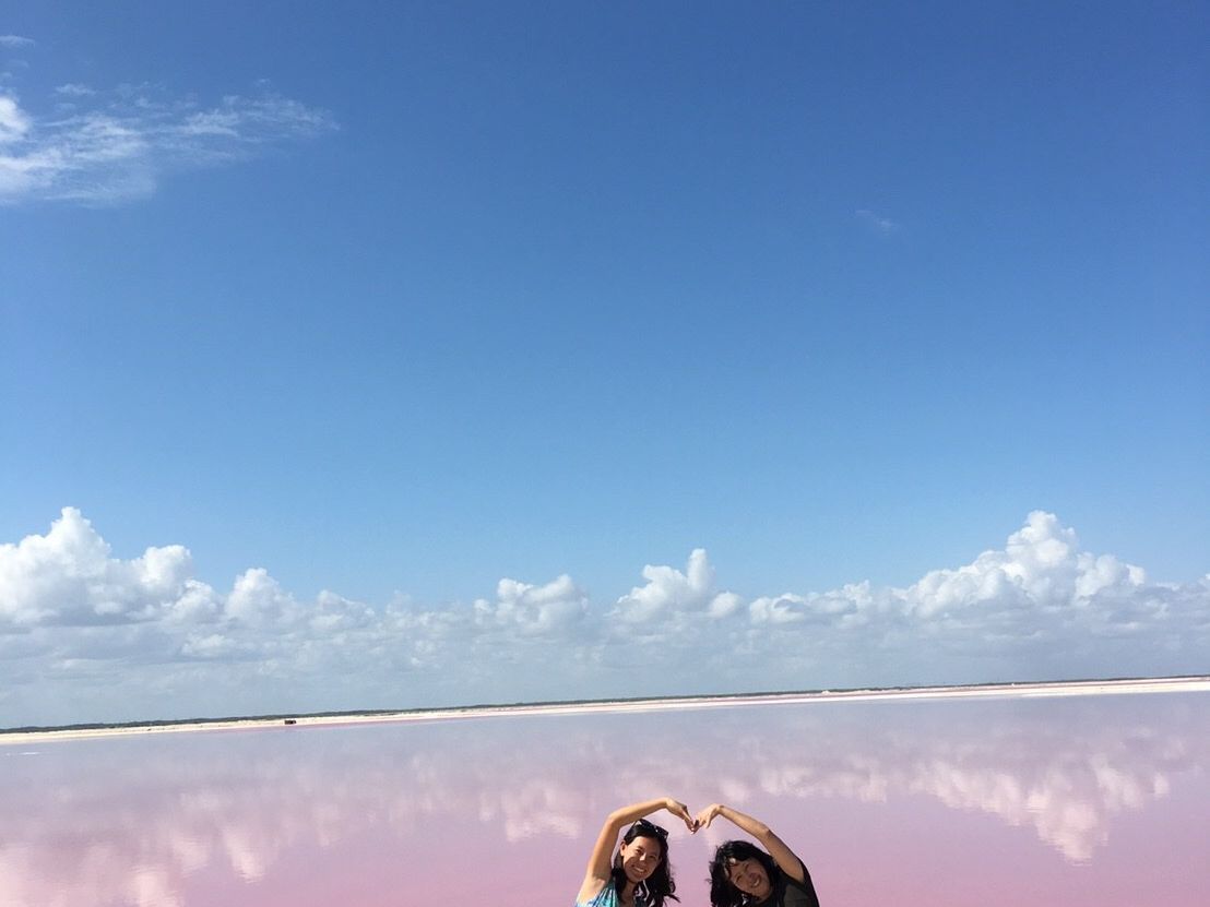 カンクンからピンクレイクまでは、結構な時間バスに揺られ・・、体的にもきついなぁと思っていましたが、到着した瞬間、疲れが吹っ飛びました!これまで見たことのない色!鮮明なピンクの湖と爽快な青い空のコントラスト、本当に最高の一言です。