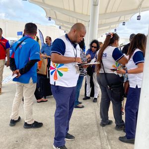 スタッフは出口を直進したところにいて、専用のポロシャツを着ているのですぐにわかりました。