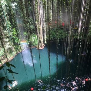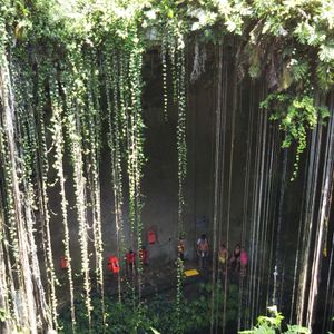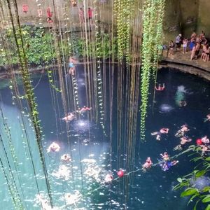 朝早くに立ち寄ったグランセノーテは、人も少なく透明度も抜群でしたが、午後からのイキルは壺形の深いセノーテで芋の子を洗うような人だかりで、水の透明度もイマイチでした。でも、セノーテと言ってもそれぞれに深さや形が違うので、両方見れて良かったと思います。ツアーで貸してもらえるシュノーケルセットのサイズが合わなくて、セノーテの底へ落ちて行き、同行者が取りに潜ってくれて、その姿がおもしろかったです。
