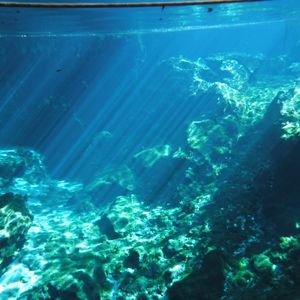 グランセノーテは朝イチで入場し、まだ誰も入っていない透明度の高いうちにシュノーケリング。水着は着て行くのが正解。タオル、ビーチサンダルは必須です。カメラをレンタルしたので水中の神秘的な様子が撮れました。