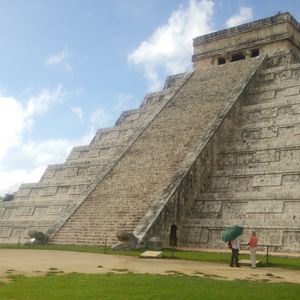 チチェンイッツアは遺跡に触ることができませんが、ここはピラミッドに登ることができます。