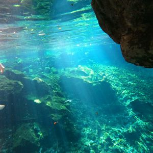 メキシコ歴25年の美人ガイドさんの案内できれいなグランセノーテで泳いできました。最初はかなり冷たいと感じましたが、泳いでいるとすぐに気持ち吸音に感じるようになってきて、気持ちよく泳ぐことができました。ス中はとても綺麗で、亀や熱帯魚などが泳いでいて、外から差し込んでいる光がとても神秘的な美しさで本当に来てよかったです。ガイドさんは現役のスキューバダイビングインストラクターで案内も適切で素敵な写真も撮っていただきました。