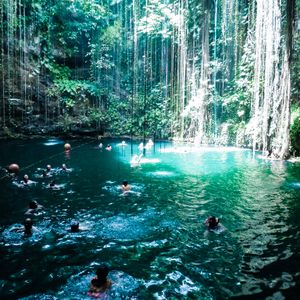 聖なる泉、セノーテの中でも特に高い人気を誇るのがグランセノーテです。 どこまでも透き通った水と鍾乳洞が幻想的な雰囲気を作り出し、世界中の人々を魅了しています。訪れる時間によって水面の色が新緑から澄んだ青に変わる様もまた心を惹きつけます。