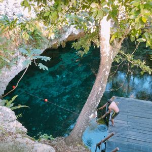 朝から半日でまわれるため午後から別の観光ができました。セノーテに一番のりで入れるので水がすごく透きとおってました。セノーテに入ってひと通りガイドさんがセノーテ内を案内してくれます。その後自由時間でした。写真、動画、いっぱい撮れてよかったです。
