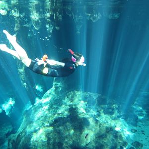 セノーテでシュノーケルできるツアーでした。朝イチから泳げたのでとても気持ち良かったです。透明度が半端ないので朝の人の少ない時間で泳げたことはいい体験になりました。