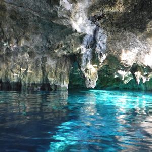 聖なる泉、セノーテの中でも特に高い人気を誇るのがグランセノーテです。 どこまでも透き通った水と鍾乳洞が幻想的な雰囲気を作り出し、世界中の人々を魅了しています。訪れる時間によって水面の色が新緑から澄んだ青に変わる様もまた心を惹きつけます。