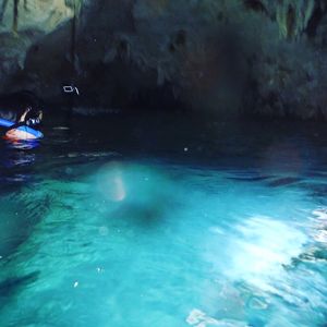 オールインクルーシブのホテルでの時間もゆっくり取りたかったため、遺跡ツアーとの組み合わせでないこちらのツアーを選択しました。他の方のレビューどおり、朝いちばんにグランセノーテに入るので水が濁る前にきれいな光のカーテンを見ることができました。ガイドさんはベテランで写真も潜って撮ってくださいました。 実際には着替えるところはなく、到着後に車の外で服を脱ぎさっとレンタルのウェットスーツを着ることになります。シャワーも外にある水のものを浴びるだけです。 半分の方はセノーテの後に遺跡ツアーにそのまま参加されました。一日ツアーだと、髪の長い方は濡れたままになります。前日の持ち物確認にもありますが、タオルはお忘れなく。 女性は化粧水やクリームがあるとよいかと思いました。