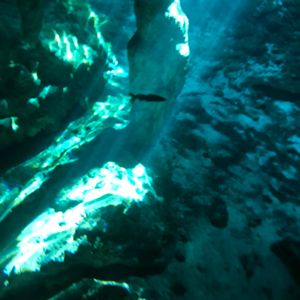 グランセノーテでは、光が差し込み、水の中から見える光のカーテンが幻想的で綺麗でした!