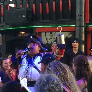 英語もスペイン語もほとんどしゃべれない中での参加でしたが、アクロバット担当の海賊の中に日本語の上手な方が1人いて助かりました。海賊風のメイクもしてくれました。