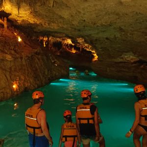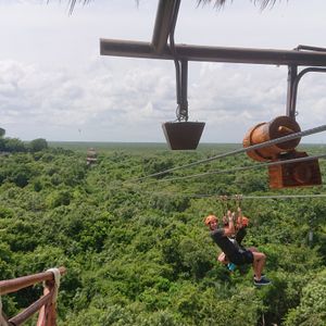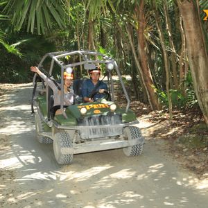 まずはバギーに挑戦。車の運転が得意でない私に、日本と逆ハンドルのバギーを運転することができるか不安だったが、運転してみるととても楽しかった。道中、イグアナや鹿にも会うことができたし、洞窟の中や水中などを走行することは非日常でスリルがあった。運転後はランチに。ビュッフェ形式でサラダやグリル、フルーツなど品数が多く、とても美味しかった。パーク内にはレストランの他にドリンク専用のバーがあり、スムージーなどハイクオリティーの飲み物も楽しめた。ランチ後はジップライナーに挑戦。2人一緒に滑ることもできる。2種類のコースがあって、1コース12本?くらい滑ることができた。最後は滝をくぐったり、水に浸かったりして、気持ち良かった。濡れたついでに鍾乳洞内の川を泳ぐアトラクションへ。ライフジャケットを着て、鍾乳洞を見ながら水の中をぷかぷか泳いだ。水の中には小さい魚もいて、人工的ではなく本当に自然の中を探索しているように感じた。続いて川下り。2人乗りの小舟に乗って、両手につけたヒレ?のようなものでひたすら漕ぐアトラクション。方向転換が難しく何度も洞窟内の岩壁に激突。パーク内には至るところにスタッフがいて、気さくに声をかけてくれる。またアトラクションに並んでいると、現地の人で遊びに来ていた家族が、お先にどうぞと順番を譲ってくれるなど、メキシコの人々の優しさに感激。行って良かった!