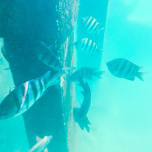 海洋公園は一部を除くオールインクルーシブです。イルカと泳ぐ、空中バイク、ジェット船は有料ですが、無料の範囲内で十分に楽しめます。まずはシュノーケリングをしました。フィンとゴーグルとシュノーケルを借りましたが、シュノーケルは使用の度に殺菌をしているのか、梱包されていたため、衛生的でした。シュノーケリングでは沢山の魚がいて感動しましたが、私の体力の問題ですぐに終了しました。