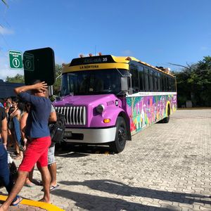 往路はシカレグループのバスで主要なホテルに迎えがあり、テーマパークのシカレに集合した後、バスを乗り換えてシェルハへ向かいます。シェルハでトゥルムへ向かう人だけバスに残りトゥルムツアーへ半日行った後にシェルハへ戻るという流れです。