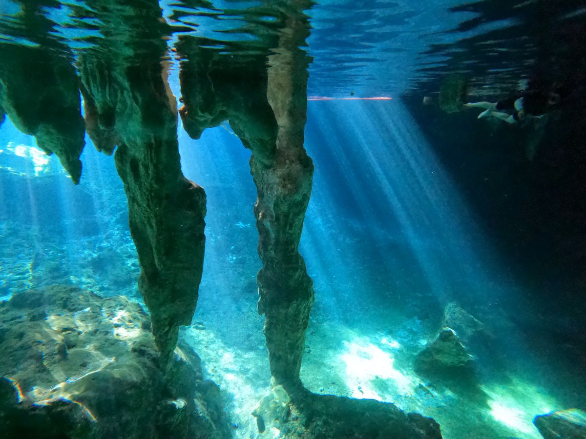 私達のグループが一番乗りだったので、透明度の高い、綺麗な青色をしたセノーテや、光のカーテンを見ることができました。