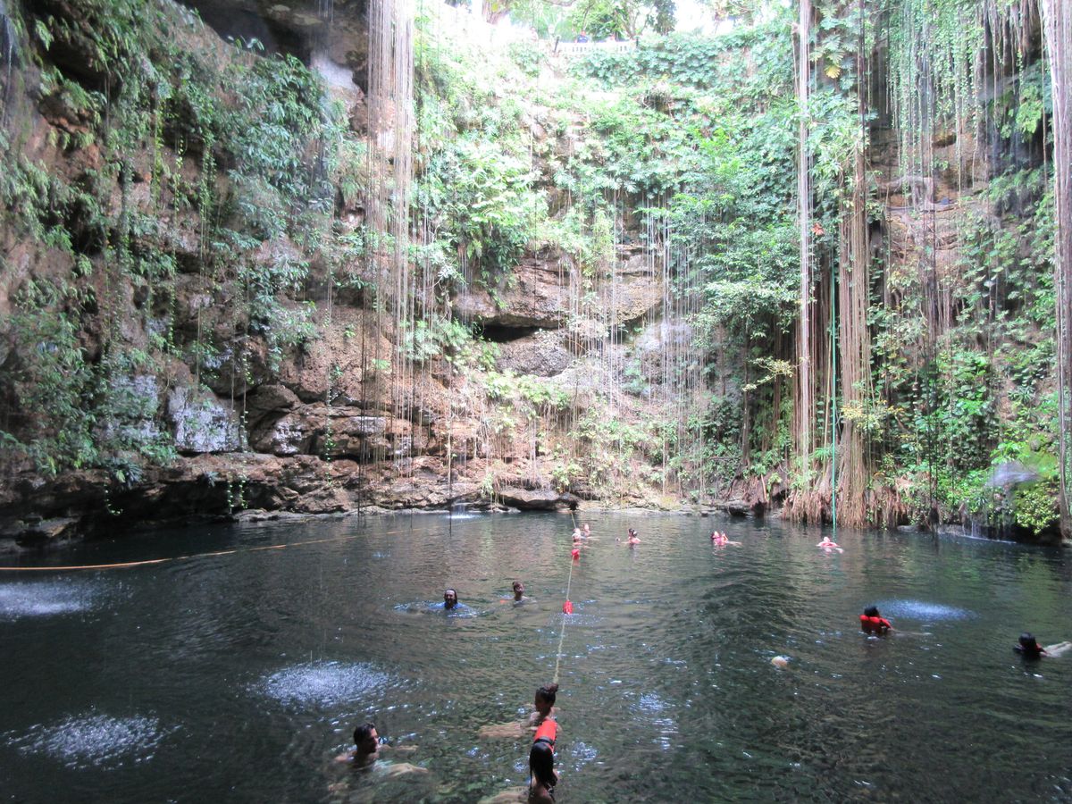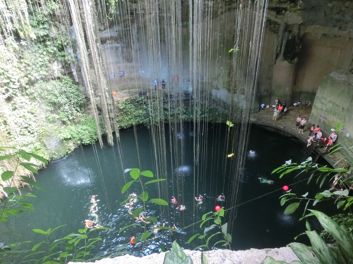 セノーテ・イキルは、透明度はあまり良くないです。私達夫婦は泳ぎませんでしたが、他の人達は飛びこんだりして楽しそうに泳いでいました。その後、隣のレストランでメキシコ料理のビュッフェをいただきました。種類は少なかったけど、おいしかった。