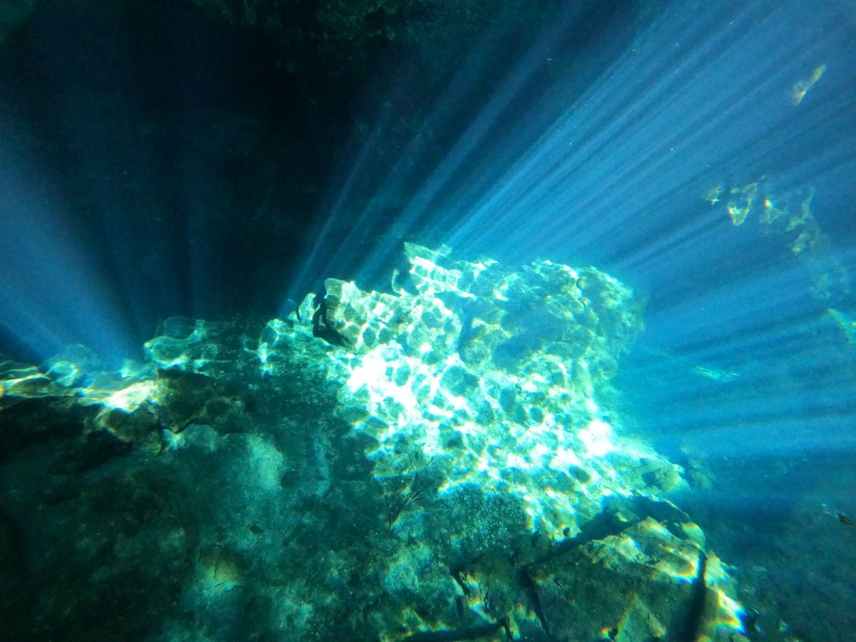 曇予報で、グラン・セノーテがどうなるかなと思ったけど、運良く太陽が出てくれ、キレイな光のカーテンが観れました!子供達も初シュノーケルで、小学生の子はちょっと苦戦したけれど、貸し出しのライフジャケットを着ていたのと、ロープもあったので、大丈夫でした。小さい子は、レンタルしてくれるゴーグルを使うよりも普段使っているゴーグルを持参した方が、慣れてて使いやすいかも?遊泳後の着替えはトイレでしましたが、私達のツアーが朝1番乗りなので、混み合うこともなくスムーズに済みました。この後の立ち寄るところのトイレも思ったよりもどこもキレイでした〜。