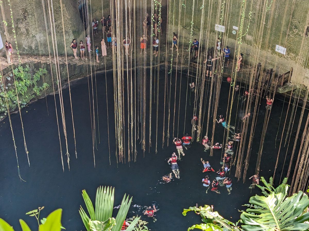 セノーテイキルは着替えたりする時間を除くと、遊泳時間は5分程度ですwライジャケ着用のため潜ることはできず、プカプカ浮いていることしかできません。飛び込みもしました。かなり短時間なので水中カメラは借りませんでしたが、持参した防水パックと携帯で問題なかったです。