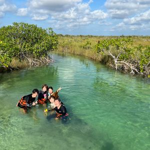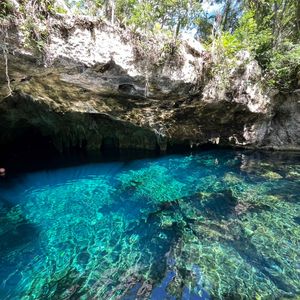 前日が強風で、もしかしたらカサセノーテは濁っちゃってるかも…とのことで急遽セノーテエデンへ変更!最初は呼吸がうまくいかず本当に潜れるのか心配でしたが丁寧に手解きいただき無事楽しむことができました!