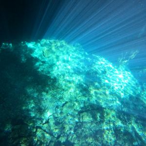 朝5:10集合と早い時間ですが、誰もいないグランセノーテに一番乗りで入れます!でしたが、ウエットスーツ、ライフジャケット、ゴーグル、シュノーケル、GoProをお借りしていざ泉の中へ。水は冷たいですがウエットスーツがあるのですぐ慣れます。水の透明度が半端なくあんなに綺麗な水中の世界は初めて見ました!光のカーテンも神秘的。GoProで綺麗に撮れました。