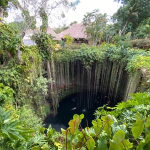 カンクンから車で2時間ほどのところにあるセノーテ・イキル(Cenote il kil)。セノーテ・イクキルと表記もされます。チチェン・イッツァ遺跡にほど近く、セットで訪れる人も多い人気セノーテです。 セノーテを囲うように植物の根がカーテンのように垂れ下がっており、幻想的な雰囲気をかもしだしています。また水面は丸い形をしており地底深くに続いているので、まるで天然井戸のよう。透明度はそれほど高くないですが、シュノーケルや写真映えする定番観光スポットとして人気のスポットです。 【ここが見どころ!】 ・垂れ下がった木のつるが幻想的。SNSにアップしたくなるような素敵な写真が撮れます。 ・チチェン・イッツァ遺跡とセットで訪れれば地上と地下のメキシコ文明をまるごと体感! ・水深が深いので岩の上からダイブもOK!
