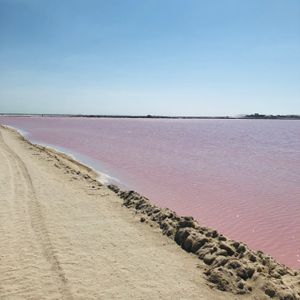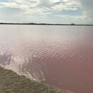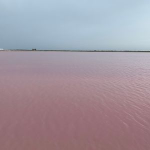 塩の湖、プランクトンの影響でピンクに見えるということです。薄いピンク色でしたが、天気も持ってくれて良かったです。