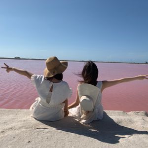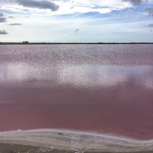 50分でバイキングランチをした後にグランセノーテを見てから3時間くらい移動し、ピンクレイクに到着。お天気に恵まれ素晴らしいピンク色を見ることができました!ただ、モノ凄い砂嵐で帽子は飛ばされてしまうので、気をつけてください。そして、日差しと照り返しが半端ないのでサングラスは必須です。それでも、あの景色はカンクンに行ったら絶対に見るべき景色だと思います。