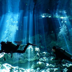 ユカタン半島に点在するセノーテ(地底湖)で夢のダイビング。光のカーテンが差し込む中、まるで空を飛んでいるかと錯覚するほどの透明度を持つ水中世界をお楽しみいただけます。 ダイビングができるセノーテは限られており、潜り方にも専門知識が必要です。 セノーテダイブライセンスを持ったインストラクターと一緒に、セノーテの世界を堪能してみませんか?