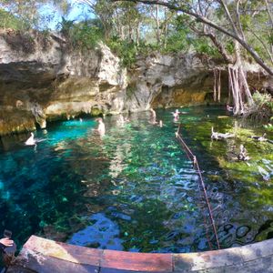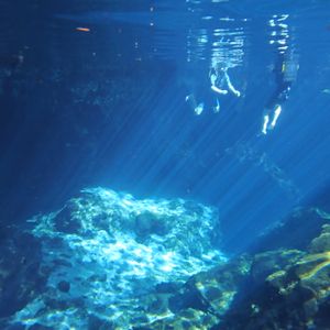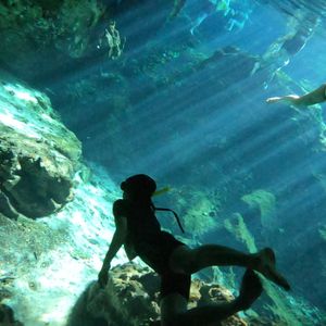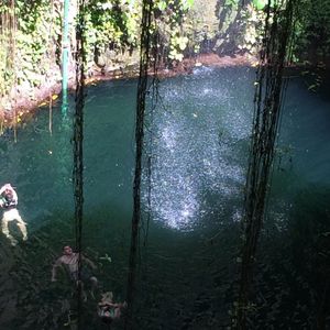 朝1番という事で人が少ないかなと思っていましたが思っていたより別のツアーに参加していた方達が先にシュノーケルなど楽しんでいました。セノーテは透明度たっぷりで40分ほどシュノーケルを楽しみました!天気も良く水中から光のカーテンを見ることができました。私たちは携帯の防水ケースを持っていなかったので水中から写真を撮ることは出来ませんでしたが用意できる方は持っていくことをおススメします!