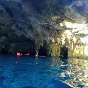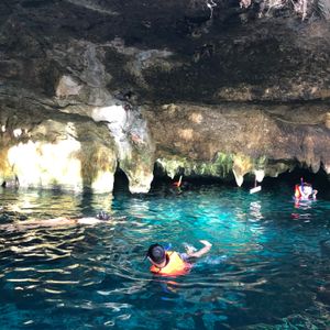 ・グラン・セノーテは、朝だったためか他の観光客も少なく、心ゆくまでシュノーケリングを楽しむことができました。透き通った湖に陽の光が差し込む幻想的な風景を堪能するとともに、カメや小魚などの生き物も間近で見ることができ、大満足です。