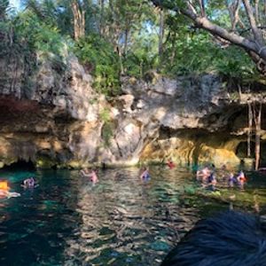 年末に参加したため37名という大人数。一人ピックアップが遅れたためか、チチェン・イツァ遺跡到着からスケジュールが遅れた。行く所行く所、すごい人だらけだったが、日本では体験できない自然の数々。水着二枚を持って行く必要な所、セノーテイキルの泳ぎを短めにして、タオル吸水と日光浴で乾かした。その上に濡れても良い服を着てピンクレイクへ。泥パックは腕と足のみにして水着一枚で全てのアクティビティを完了。泥パックから水シャワーまで結構な時間をボート移動するため、全身や顔パックしていた人はちょっと気の毒な感じでした。最後にワンピースの着替えが素早くできてオススメ。基本プランのチップがペソで言われ、金額の目安のメールがドル表記だったのかペソ表記だったのか未だに不明。基本プランでも引き落とし額はオールインクルーシブ金額と変わらず、不要なものがあっても結果オールインクルーシブが良いとの感想。カンクン、セノーテイキルで泳ぐ人はウォーターシューズがオススメです!大人数で、帰りは10時半すぎ。朝はクッキーとハーブティーで、まともな食事は昼だけ。帰りも菓子パン一つとハーブティーだけなので、お腹は空きます。お煎餅やクラッカーを持参しても良いと思います。
