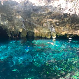 グランセノーテは朝一番に着くので人も少なく透明度が抜群で感動しました。遊泳時間もたっぷりあります。ここには小さな蚊が沢山いますが、セノーテの環境保護の為、虫刺されや日焼け止めが禁止されています。自分は蚊に刺されやすい体質ということもあり、10数箇所を刺されました。ムヒなどを持参すると良いかもしれません。