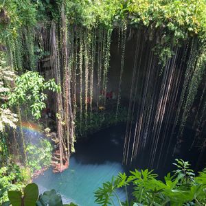 お昼のタコスは小林さんからオススメの食べ方を教えていただき、実際食べたらとても美味しかったです!その近くのセノーテイキルは写真の本当にそのままで、垂れ下がったツルや光の差し込み具合がとても幻想的でした。