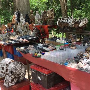 ランチは50分間、セノーテイキル見学を兼ねてブュッフェ形式です。井戸型のセノーテイキルはとても神秘的でした。お土産屋さんでハチミツやプロポリス入りの石鹸を購入しました。(1個70ペソ)