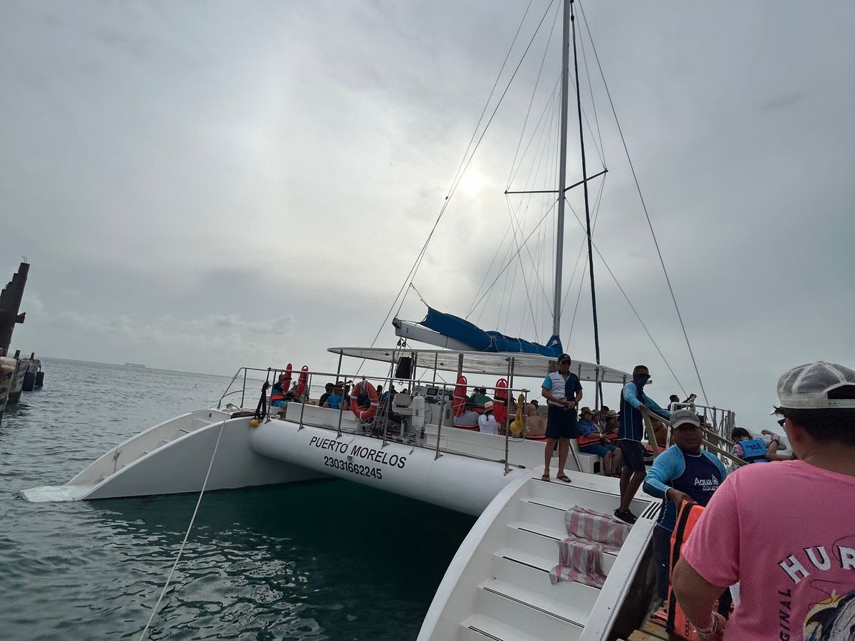 ホテルピックアップ後、ツアー会社の船着き場に集まり、無人島イスラ・コントイに向け出航!当日の天候か外洋からか波のアップダウンに揺られながら、怪鳥がとびかう無人島に到着。澄んだビーチでのんびりした後、ランチを食べ、島を散策。その後、観光のイスラ・ムへーレス島に到着し、ショッピングなど街歩き。充実した満喫の一日でした。