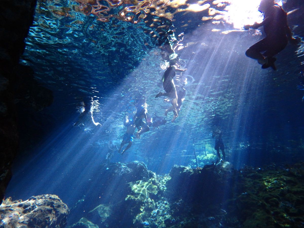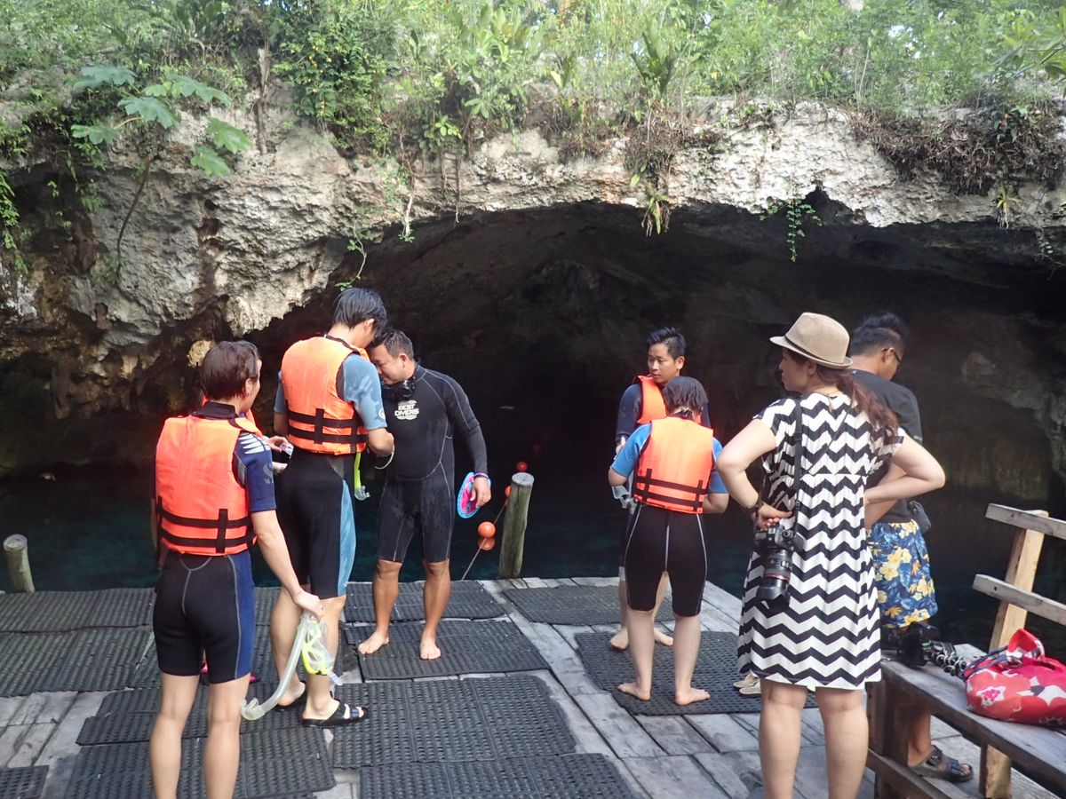 セノーテは思っていたほど広い場所ではなく、水に浸かって光の差し込む水中を楽しむ程度
