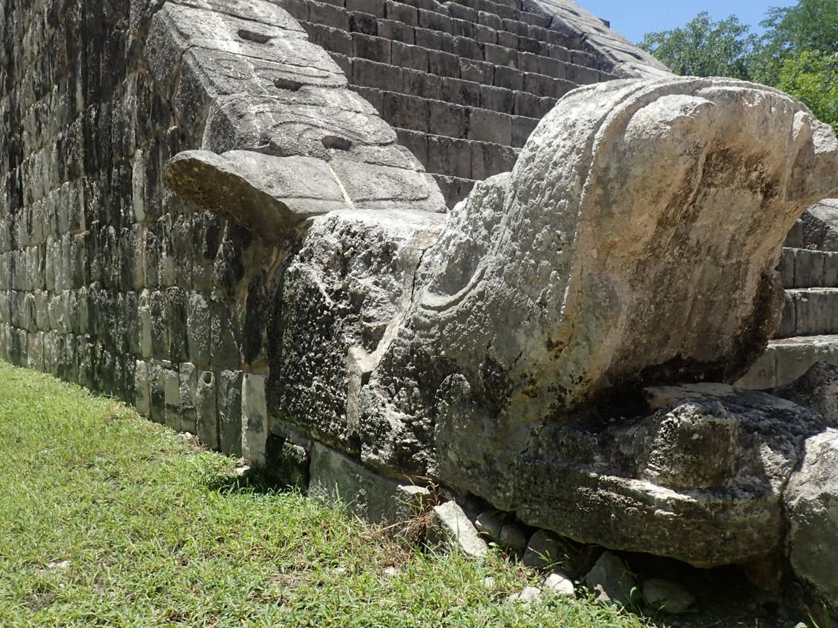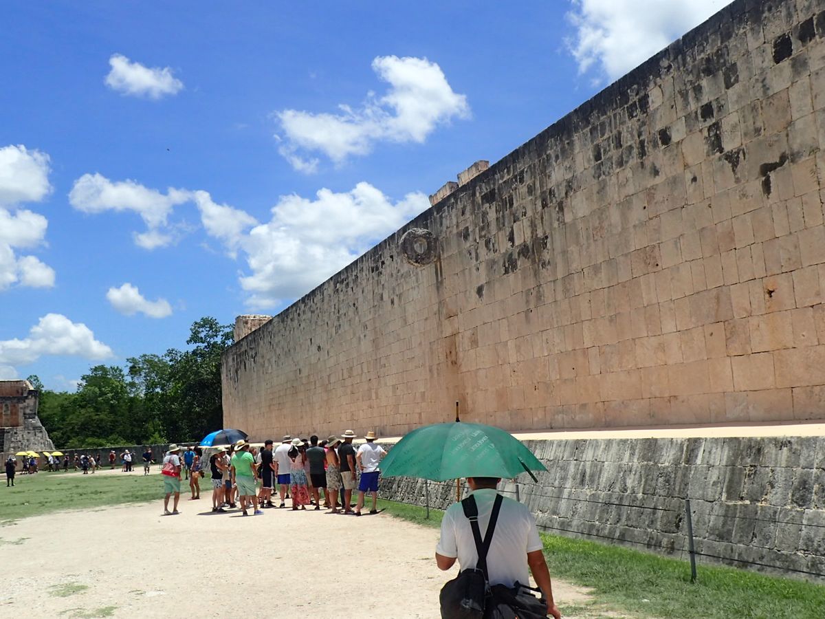 チチェンは直射日光がマジキツイ!到着翌日のツアーだったので、貸していただけた傘が、大いに役に立ちました。ククルカンのピラミッド以外にも球技場をはじめ。幾つかの遺跡が点在しており、それなりに楽しめましたが、現在は、登ることもでず、チャックモール像に、近寄れないのが残念でしたが、ピラミッド遺跡は圧巻です
