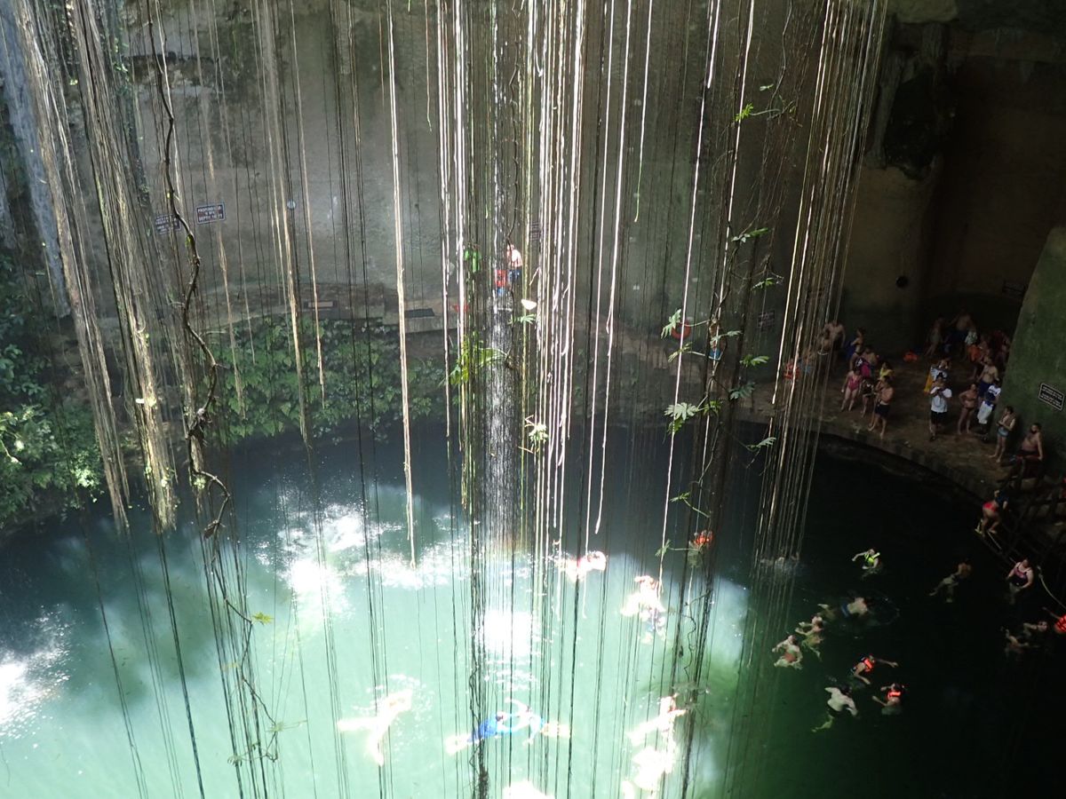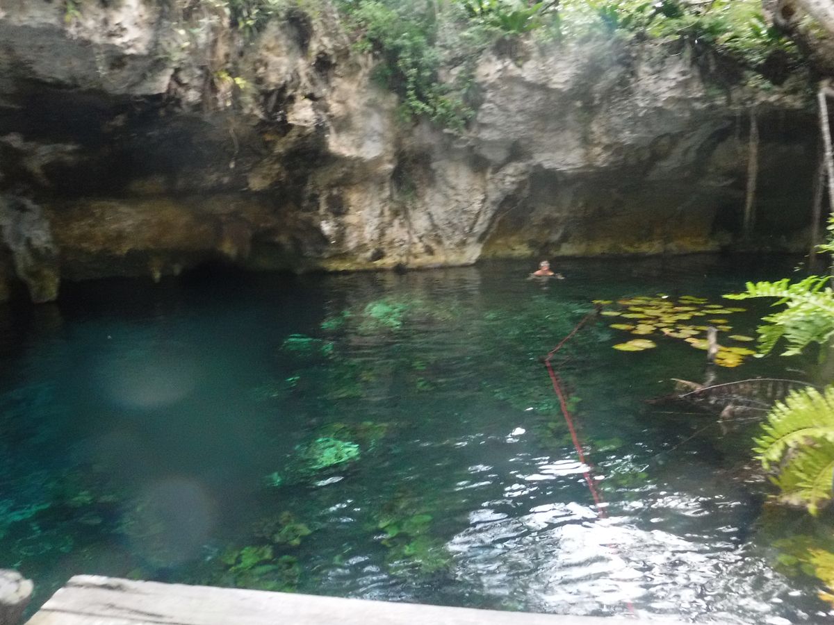 ひと通りガイドが終わった後に自由行動。奥のセノーテに行くが、崖地みたいに高く、透明度はなく、グランセノーテとの違いに驚いた。というか、心霊スポットを彷彿とさせるような心的圧迫感があって、自然の脅威を感じた。