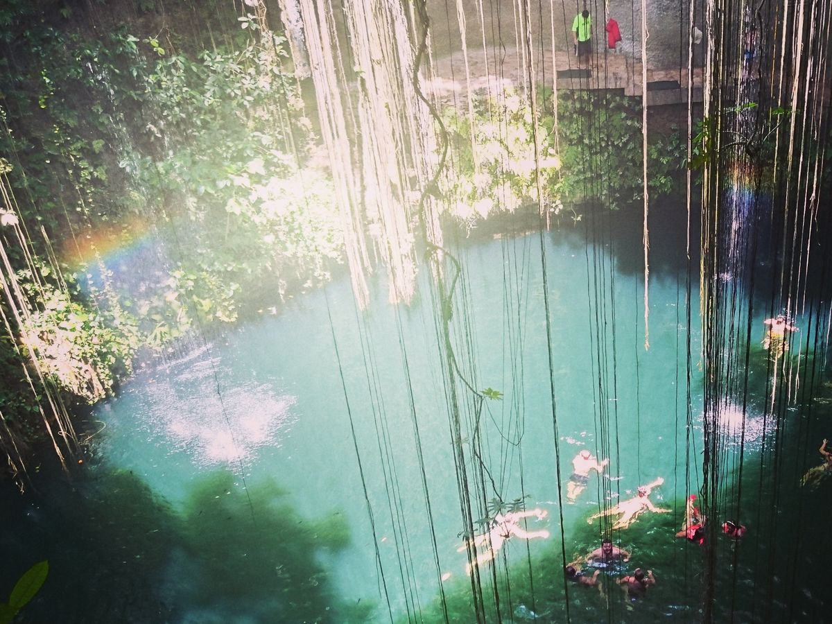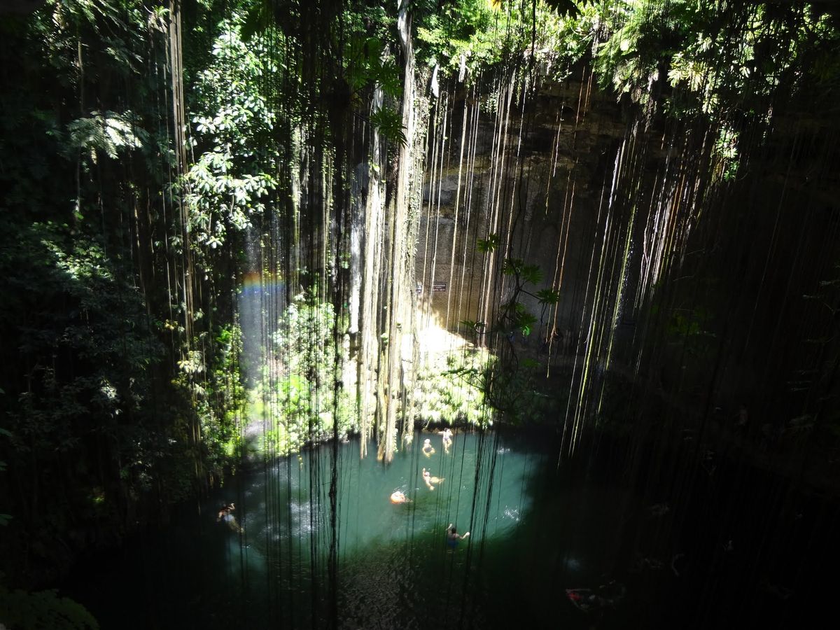 朝は早く、グランセノーテは貸切に近く、人が少ないことでガイドブックに載っているような光のカーテンを見ることができました。