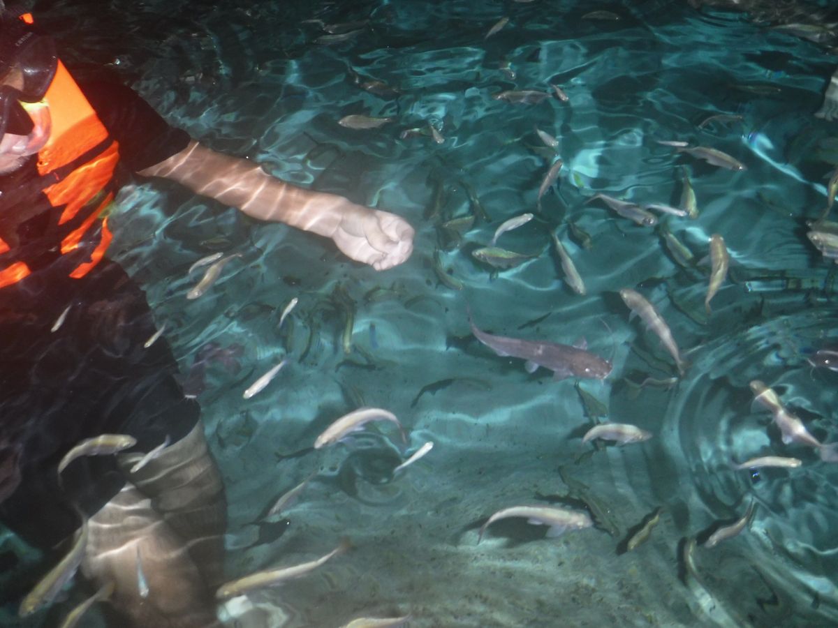 その他、ガイドさんがコウモリの巣を見つけてくれたり、ナマズや小魚に、エサをあげたり、終始楽しませてくれた。