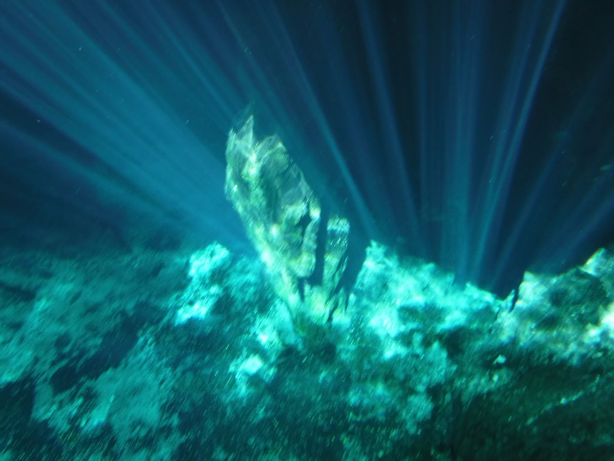 グランセノーテは朝早いこともあって、とても澄んでいて、天候に恵まれたおかげで光のカーテンもよく見えました。