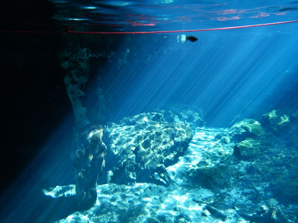 グランセノーテに朝一番に入れる時間に出発するので、澄んだ水に光のカーテン(これは天候次第ですが)を見ることができます。